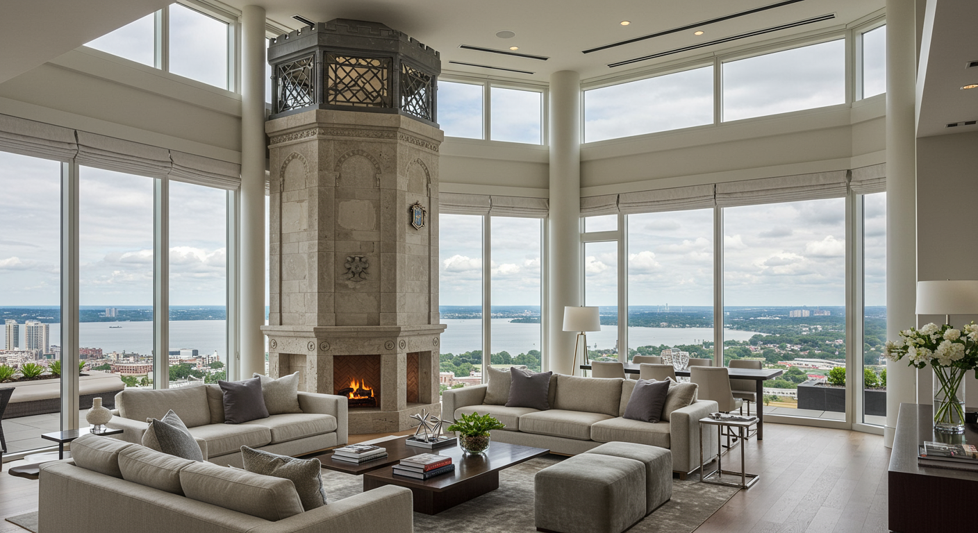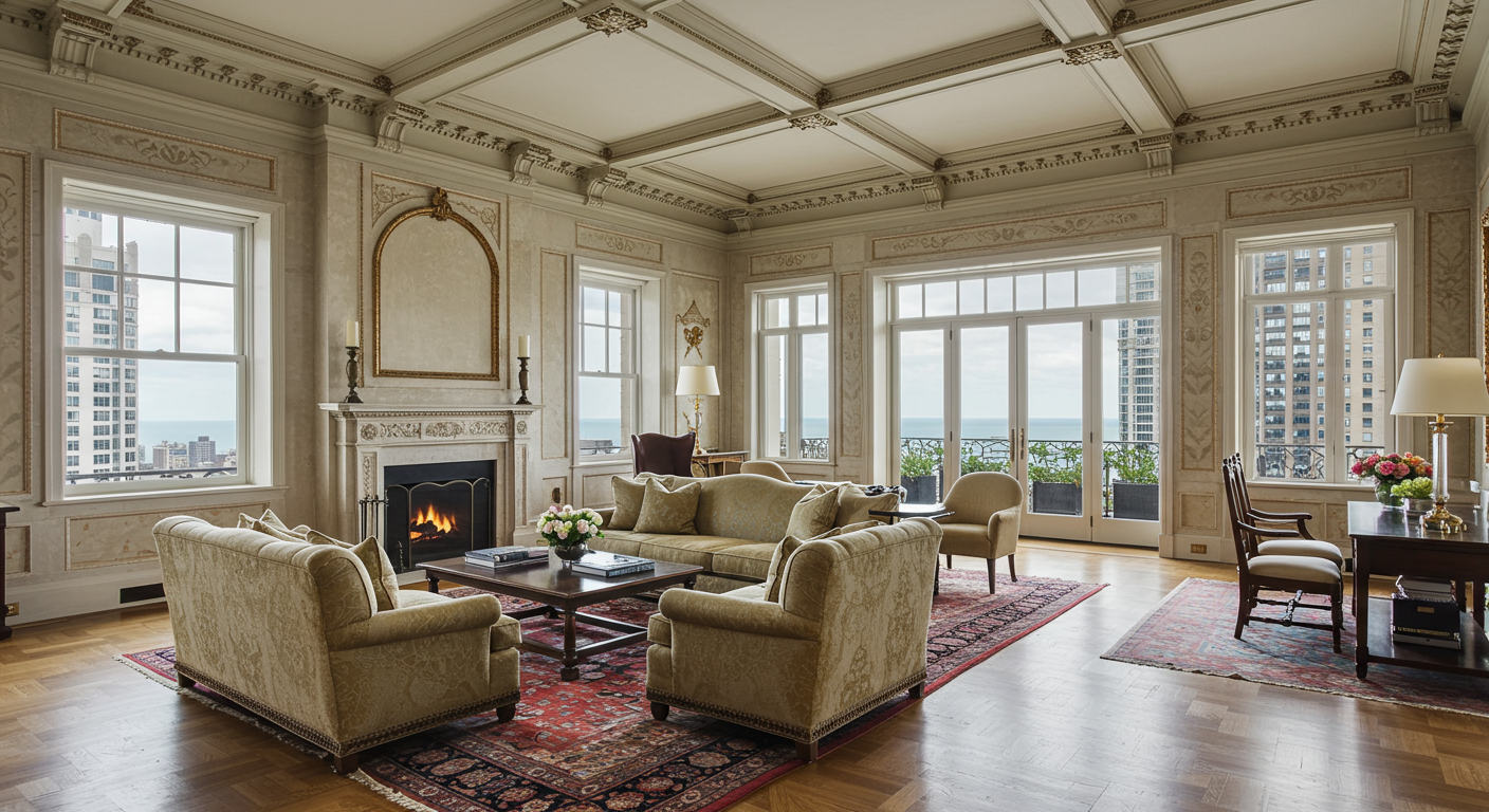 The Michigan Avenue penthouse condo of former Chicago Bears player Brandon Marshall is back on the market for a cool $5 million. Perched atop an 1898 building that once served as Montgomery Ward’s headquarters, the 6,400-square-foot renovated home features four bedrooms, 20-foot ceilings, views of Lake Michigan and Millennium Park, 2,000 square feet worth of outdoor terraces, and an ornately detailed great room in the historic building’s original observation tower.