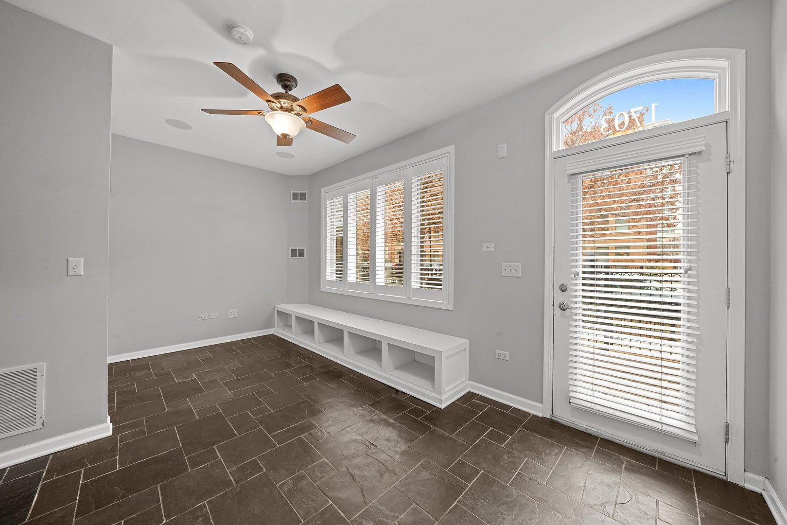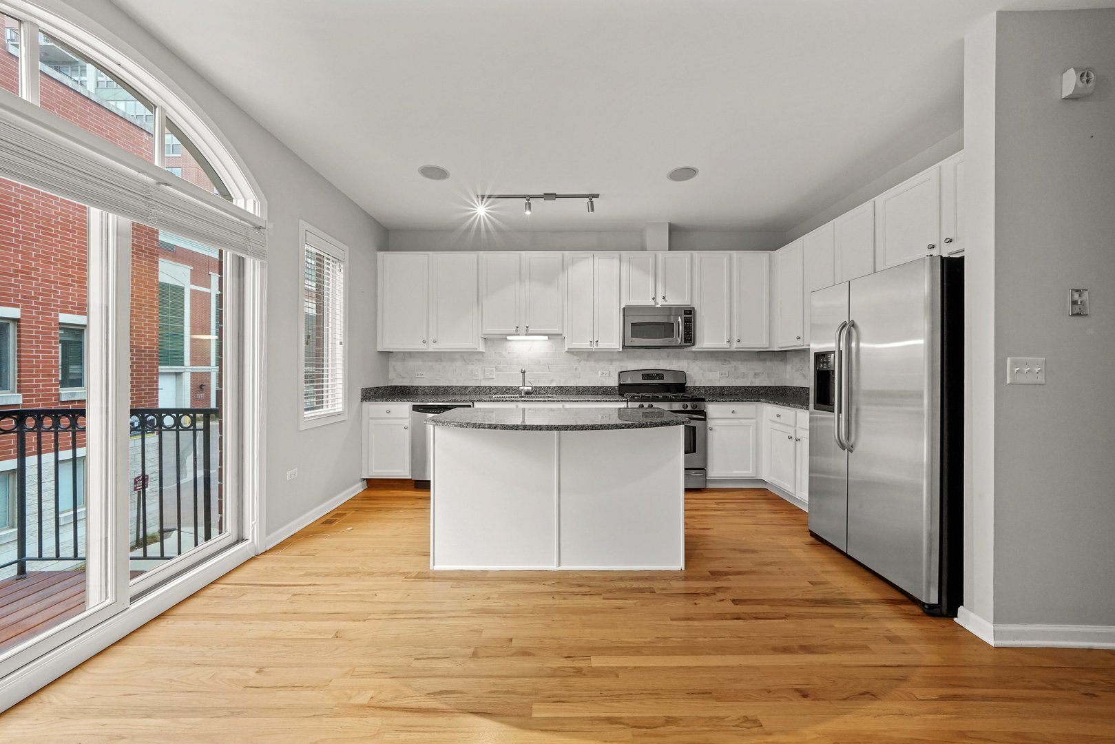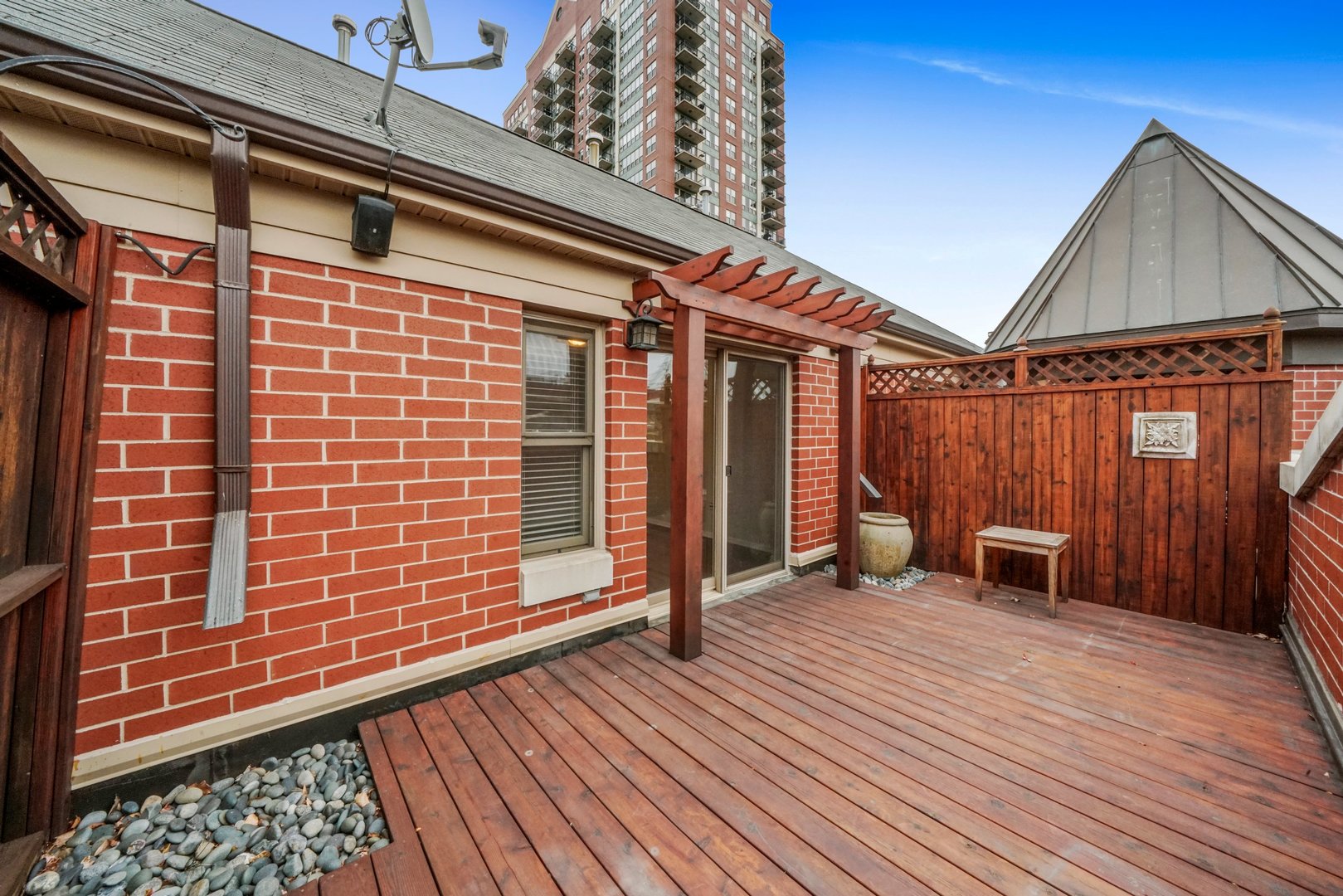 Tucked behind a gated entry in the prestigious Historic Prairie District, this four-level townhouse offers nearly 2,600 square feet of refined living-where timeless design meets modern comfort in one of the South Loop's most storied enclaves. On the main level, a sun-filled formal living room with a stately fireplace flows into a designated dining area, all grounded by rich hardwood floors. The kitchen is equally compelling-appointed with granite countertops, stainless steel appliances, and a breakfast nook that opens to a private balcony, ideal for casual dining and evening grilling. The third level is dedicated to rest and retreat, featuring a luxurious primary suite with a spa-inspired bathroom clad in travertine, a large walk-in shower, and radiant heated floors. Down the hall, a spacious second bedroom sits adjacent to a beautifully upgraded full bathroom-perfect for guests or family. Ascend to the top floor and discover a versatile third bedroom with its own full bath-easily transformed into a lounge-worthy family room with skyline views. The entry level offers a welcoming flex space ideal for a home gym or office, along with generous storage and a heated, attached two-car garage. Outdoor living is a true highlight, with a charming front patio, a balcony off the kitchen, and a private rooftop terrace-each offering its own moment of serenity in the city. Just moments from Grant Park, the lakefront, and Museum Campus-with easy access to Wintrust Arena, Mariano's, Trader Joe's, public transportation, and major highways-this is South Loop sophistication, elevated.
