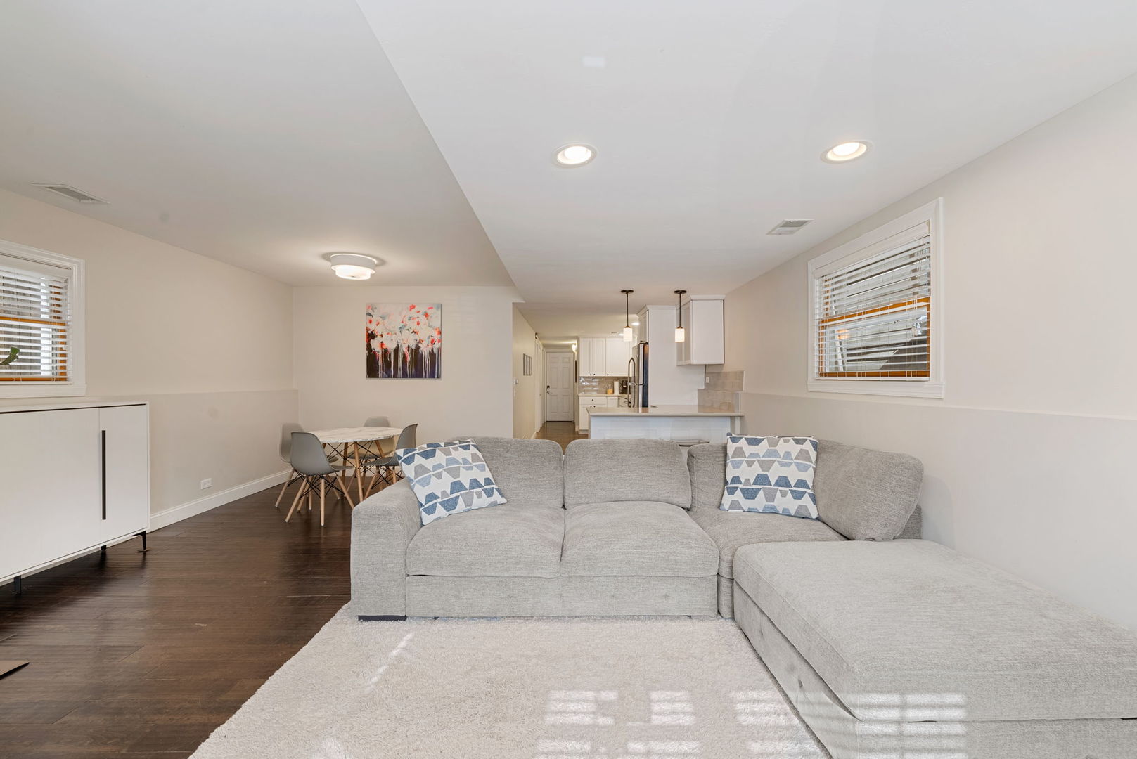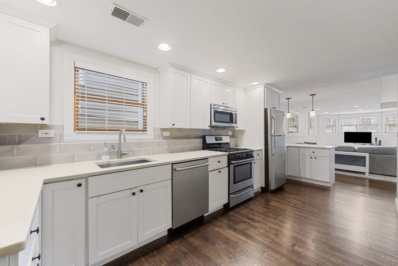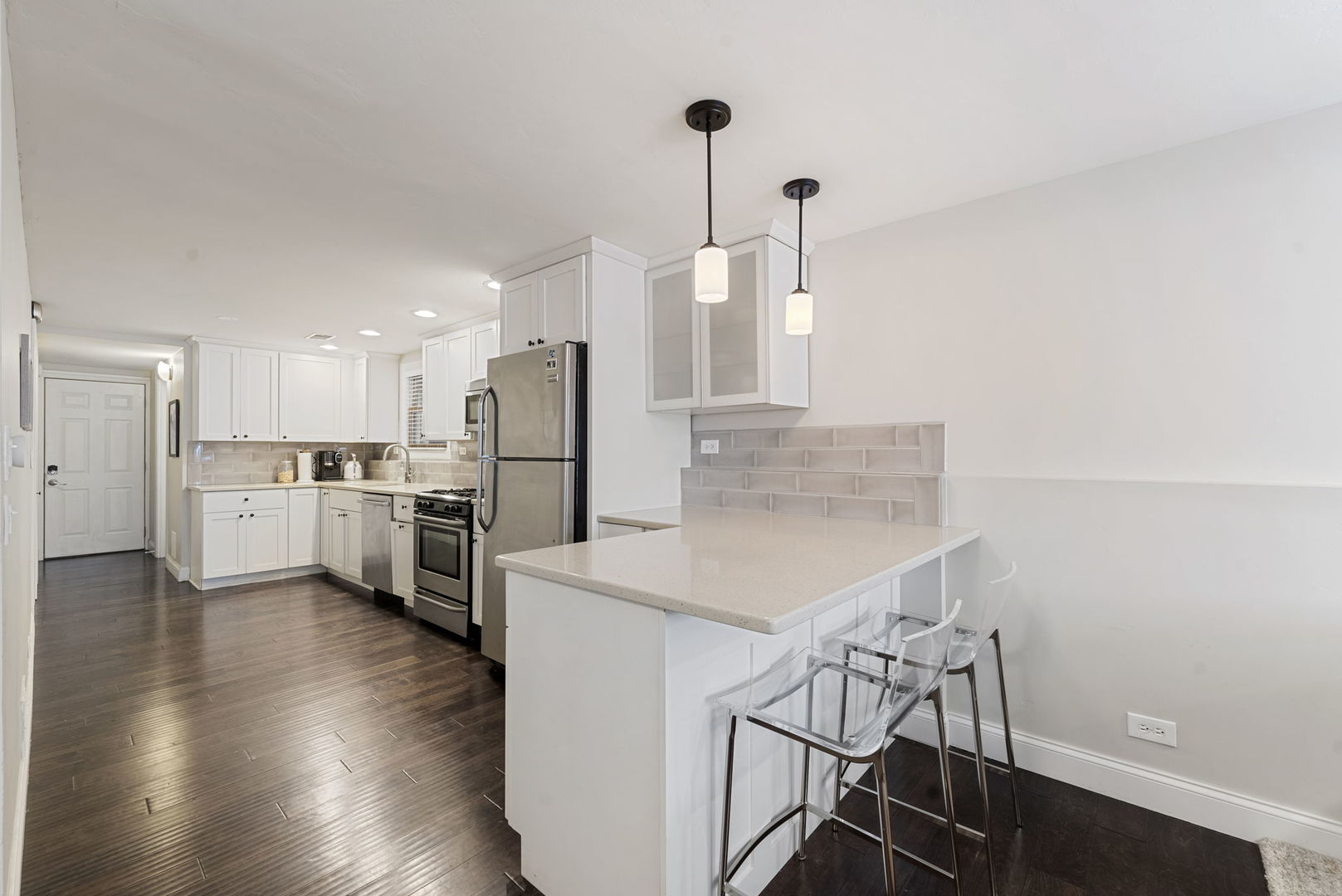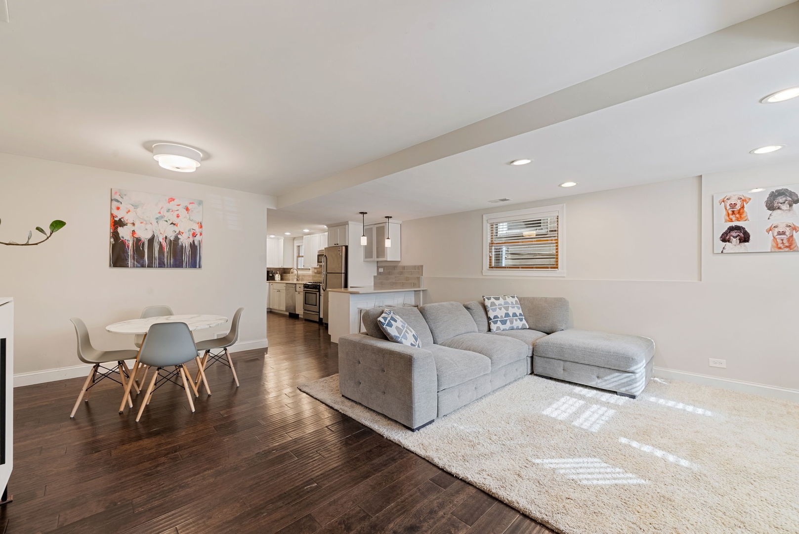 Tucked away in a charming, tree-lined street in West Lakeview, this beautifully renovated 2-bedroom, 1-bathroom condo offers the perfect blend of modern elegance and everyday comfort. Situated in an intimate 3-unit brick building, this garden-level home is bright, spacious, and thoughtfully designed. The open layout provides an inviting flow, with a generous living and dining area perfect for relaxing or entertaining. The gourmet kitchen features stainless steel appliances, quartz countertops, and a breakfast bar-functional and stylish for any home chef. Both bedrooms are well-sized and provide ample space to unwind, while rich walnut floors throughout add warmth and character to the home. Step outside to your private garden-like patio, an ideal spot to enjoy a quiet morning coffee or an evening with friends. Additional conveniences include in-unit laundry and one parking space, making this home as practical as it is charming. Perfectly located, you'll find yourself steps away from boutique shops, popular restaurants, and the new Whole Foods at Lincoln, Belmont, and Ashland. The Southport Corridor, Roscoe Village, and the Paulina Brown Line "L" are all within walking distance, offering easy access to some of Chicago's best amenities. Plus, this home is situated in the highly regarded Burley School District. This is a truly special home, offering a wonderful combination of style, location, and convenience. Don't miss your chance to make it your own.