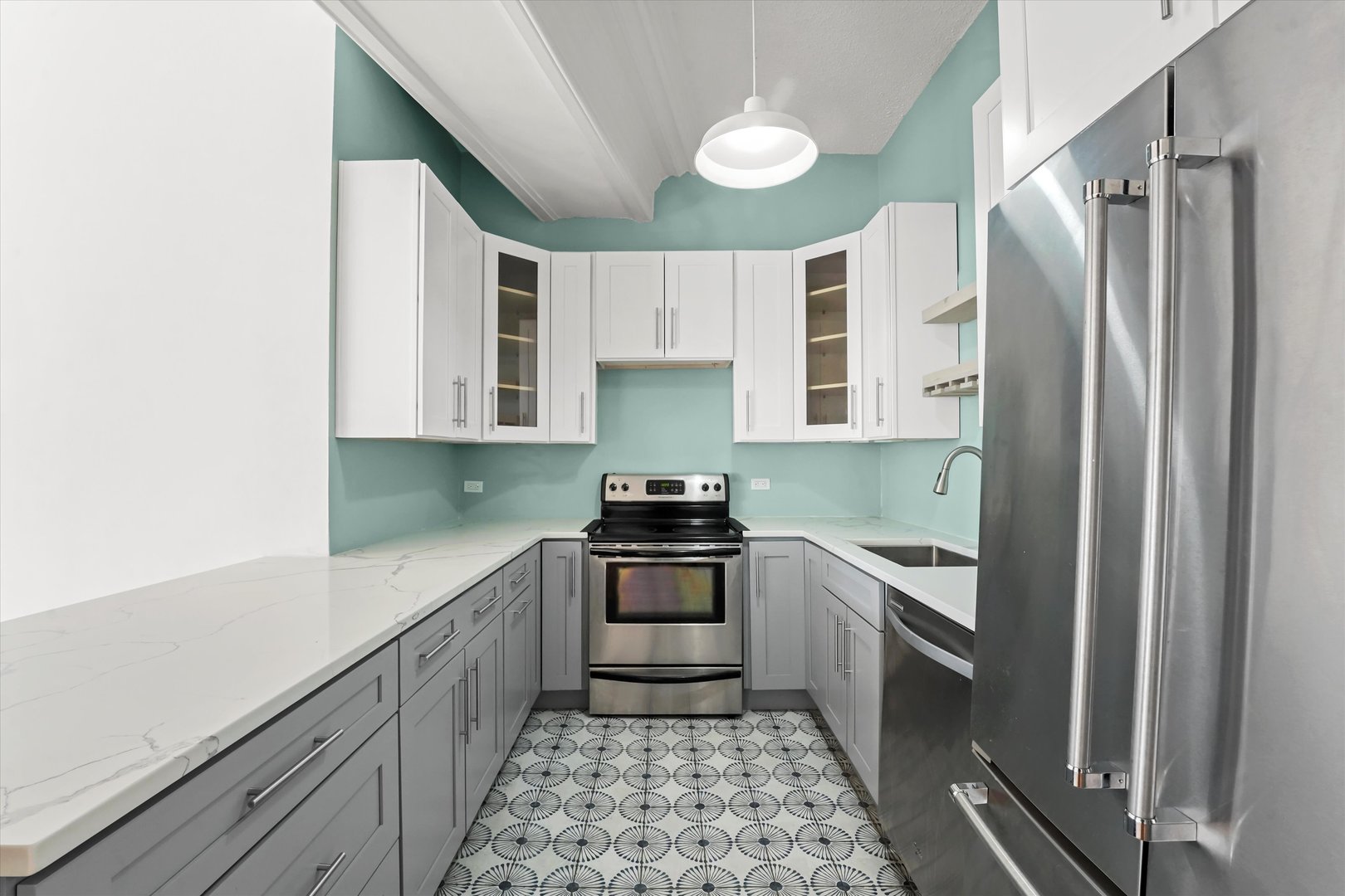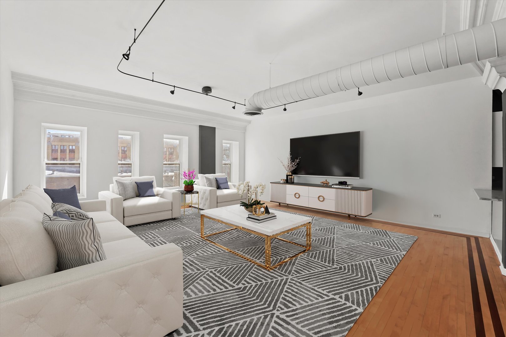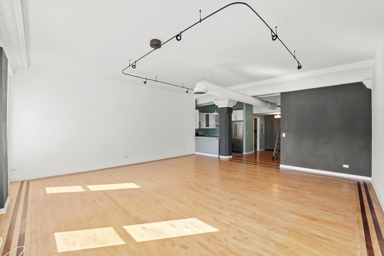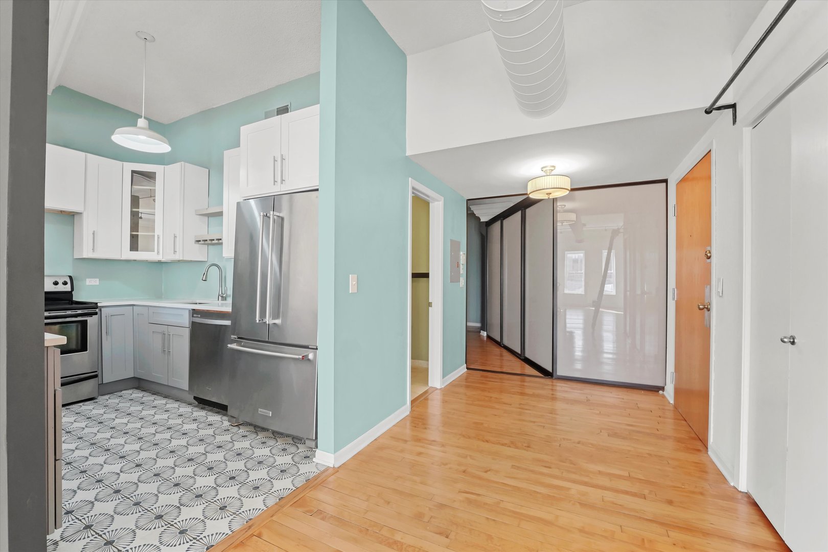 Welcome home to this spacious and inviting convertible two-bedroom, 1.5 bath condo, featuring thoughtful design and a versatile layout perfect for modern living. A gracious entryway with a charming old-style library ladder welcomes you into a massive living/dining area with high ceilings, ideal for both entertaining and relaxation. The beautifully renovated kitchen is equipped with sleek two-tone cabinets, new tile, and pristine quartz countertops, complemented by stainless steel appliances and convenient bar seating for casual dining. The two bedrooms are separated by striking glass doors, offering flexibility for how you use your space. Throughout the home, enjoy the elegance of inlaid hardwood floors, crown molding, and abundant natural light. This well-maintained building offers a number of desirable amenities, including an elevator for easy access, a laundry room on the second floor, and a secure access system. Residents also enjoy plentiful common area storage, available at no additional cost. The building is professionally managed by an active HOA, ensuring everything runs smoothly. Located in a vibrant and highly sought-after neighborhood, this condo puts everything you need within a short walk. It's just one block from the Paulina Brown Line, and only two blocks from the Ashland & Belmont buses. Shopping is a breeze with Target just a block away, Whole Foods and Walgreens two blocks away, and Jewel just a 10-minute walk. For book lovers, the Belmont Lincoln Library is just one block from your doorstep. With fantastic dining, shopping, and entertainment options nearby, you'll never run out of things to do. For fitness enthusiasts, you're in luck! Within two blocks, you'll find the YMCA, XSport, a yoga studio, and a CrossFit gym, making it easy to maintain an active lifestyle. Plus, there is ample non-permitted street parking for those with cars. This home combines comfort, style, and an unbeatable location - a true gem in a thriving neighborhood.