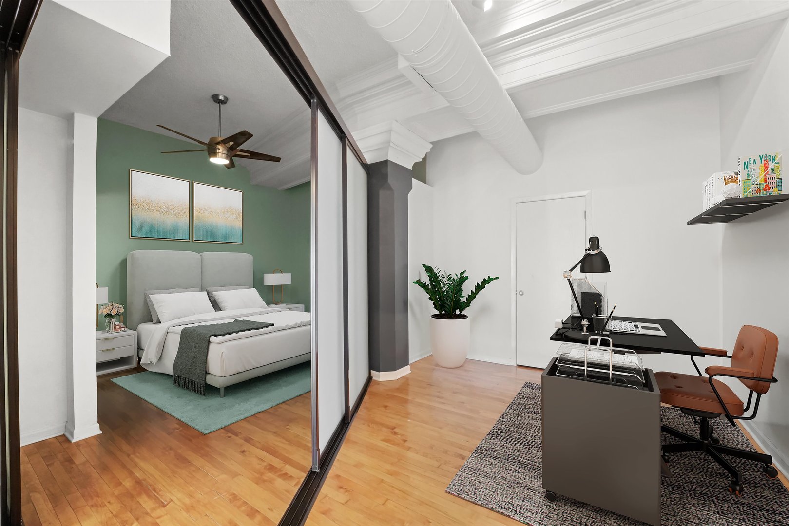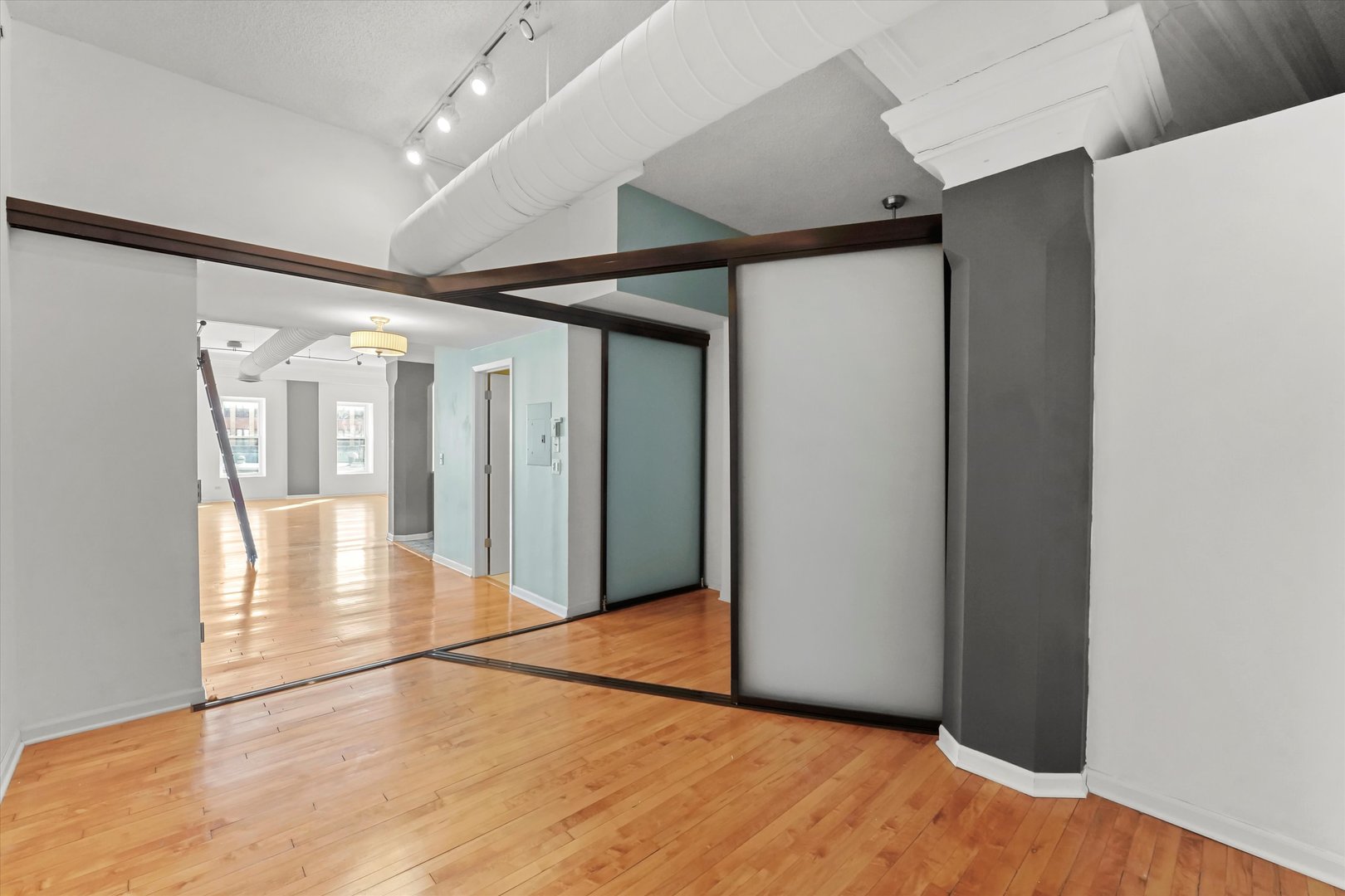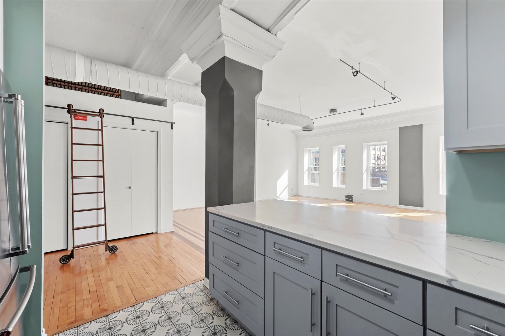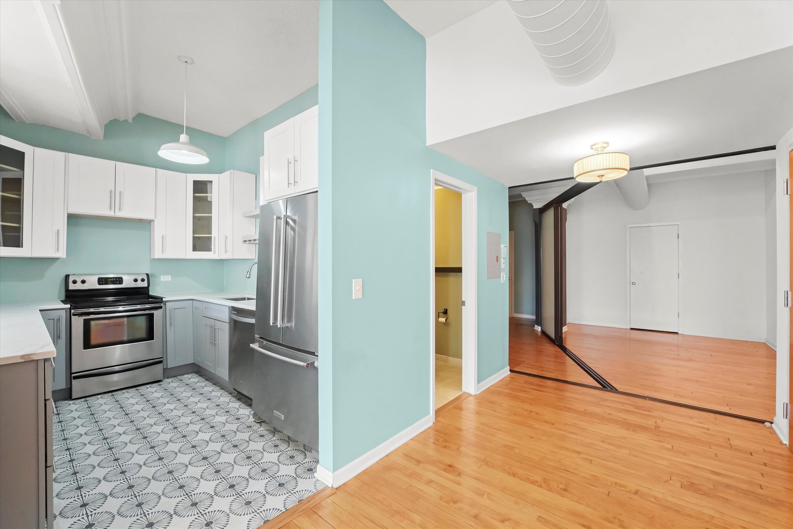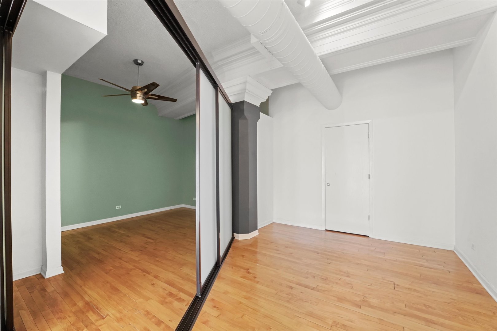Welcome home to this spacious and inviting convertible two-bedroom, 1.5 bath condo, featuring thoughtful design and a versatile layout perfect for modern living. A gracious entryway with a charming old-style library ladder welcomes you into a massive living/dining area with high ceilings, ideal for both entertaining and relaxation. The beautifully renovated kitchen is equipped with sleek two-tone cabinets, new tile, and pristine quartz countertops, complemented by stainless steel appliances and convenient bar seating for casual dining. The two bedrooms are separated by striking glass doors, offering flexibility for how you use your space. Throughout the home, enjoy the elegance of inlaid hardwood floors, crown molding, and abundant natural light. This well-maintained building offers a number of desirable amenities, including an elevator for easy access, a laundry room on the second floor, and a secure access system. Residents also enjoy plentiful common area storage, available at no additional cost. The building is professionally managed by an active HOA, ensuring everything runs smoothly. Located in a vibrant and highly sought-after neighborhood, this condo puts everything you need within a short walk. It's just one block from the Paulina Brown Line, and only two blocks from the Ashland & Belmont buses. Shopping is a breeze with Target just a block away, Whole Foods and Walgreens two blocks away, and Jewel just a 10-minute walk. For book lovers, the Belmont Lincoln Library is just one block from your doorstep. With fantastic dining, shopping, and entertainment options nearby, you'll never run out of things to do. For fitness enthusiasts, you're in luck! Within two blocks, you'll find the YMCA, XSport, a yoga studio, and a CrossFit gym, making it easy to maintain an active lifestyle. Plus, there is ample non-permitted street parking for those with cars. This home combines comfort, style, and an unbeatable location - a true gem in a thriving neighborhood.