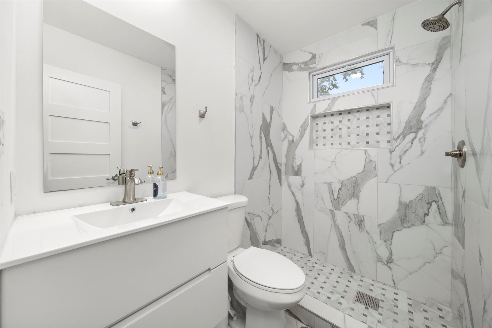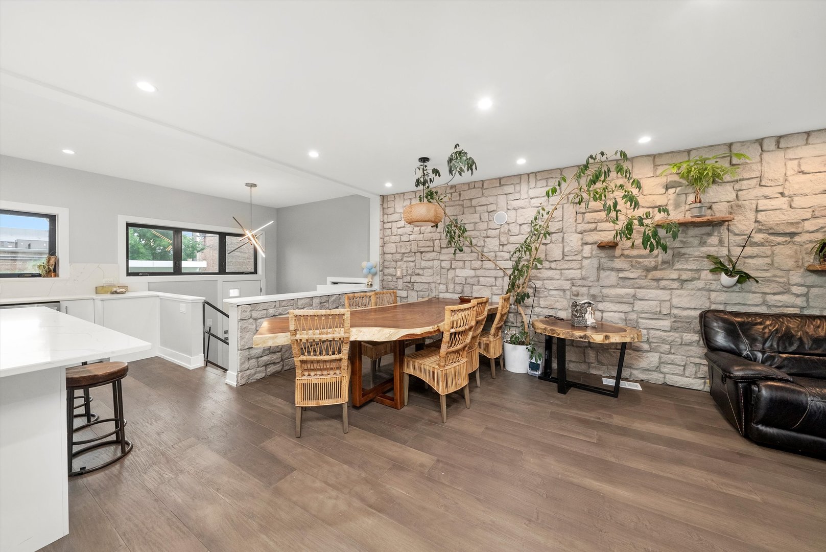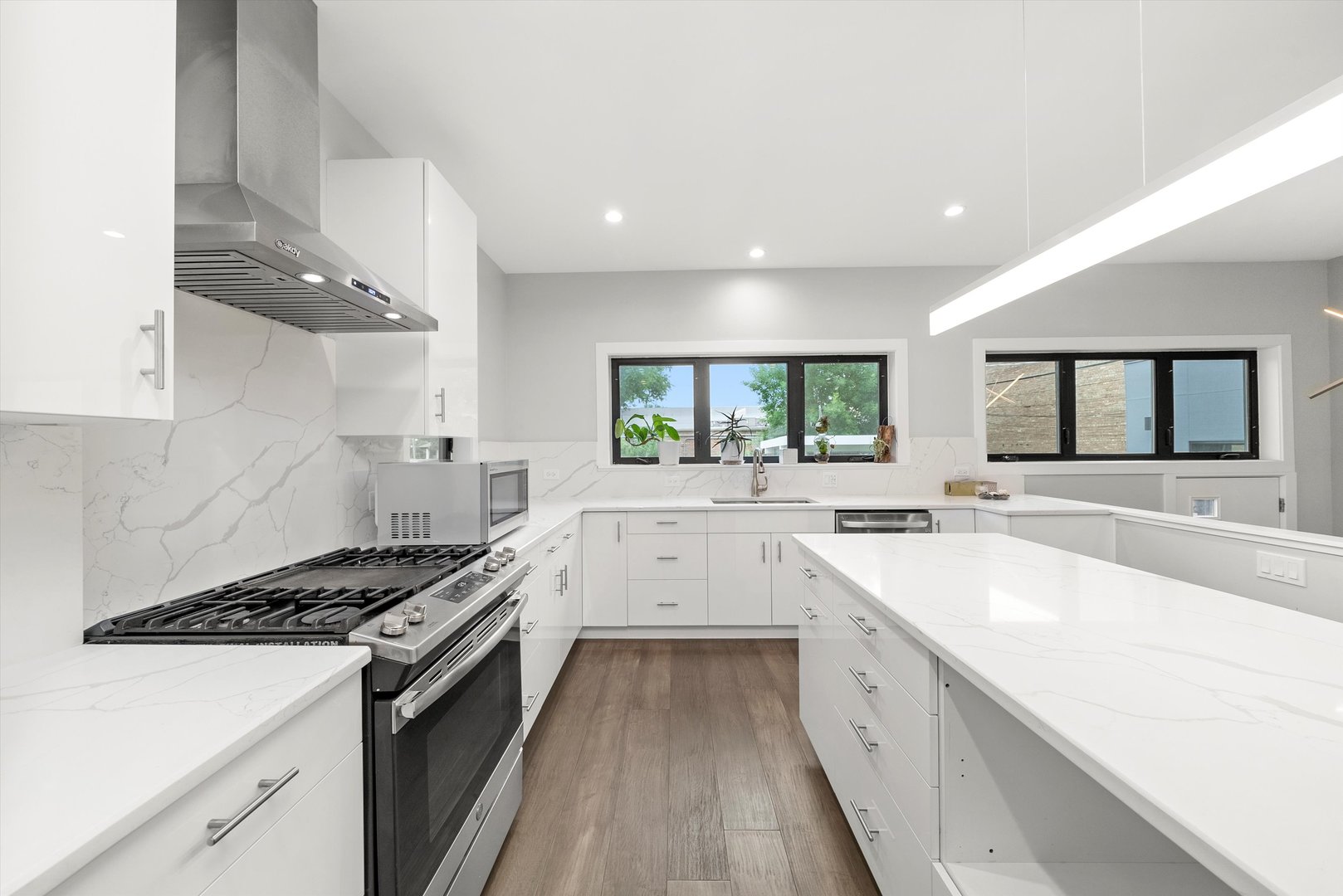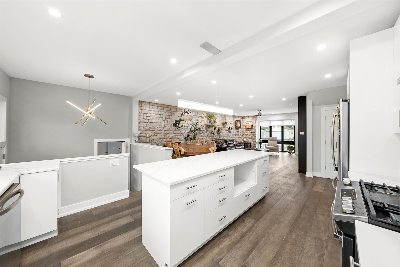 Welcome to 9 N. Lavergne Ave in Northlake - a stunning completely rebuilt new construction home offering contemporary design and exceptional features throughout. This spacious residence features 4 bedrooms, 4 full bathrooms, a versatile loft area, and an open-concept layout ideal for modern living. The main living space showcases a sleek stone accent wall, abundant natural light, and a large kitchen with quartz countertops, custom cabinetry, and plenty of workspace. The attached 4+ car garage provides ample storage and convenience. Enjoy premium amenities including built-in surround sound on three levels (including the backyard), a private fenced yard, multiple patios, gazebo, and built-in grill - perfect for entertaining. The full basement is ready for your finishing touches. Located in a desirable area with easy access to schools, parks, and major expressways, this home combines luxury, space, and function in one exceptional package.